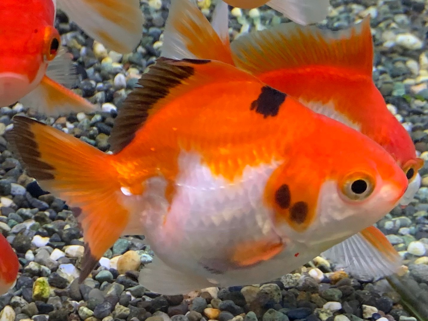 短い尾びれがかわいい琉金です。