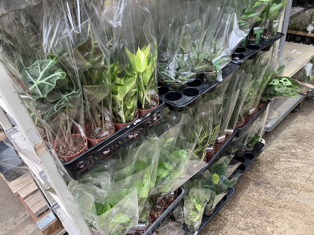 ▲苗も充実、穴の開いていない鉢にハイドロ用の植込み材で植えつけましょう。