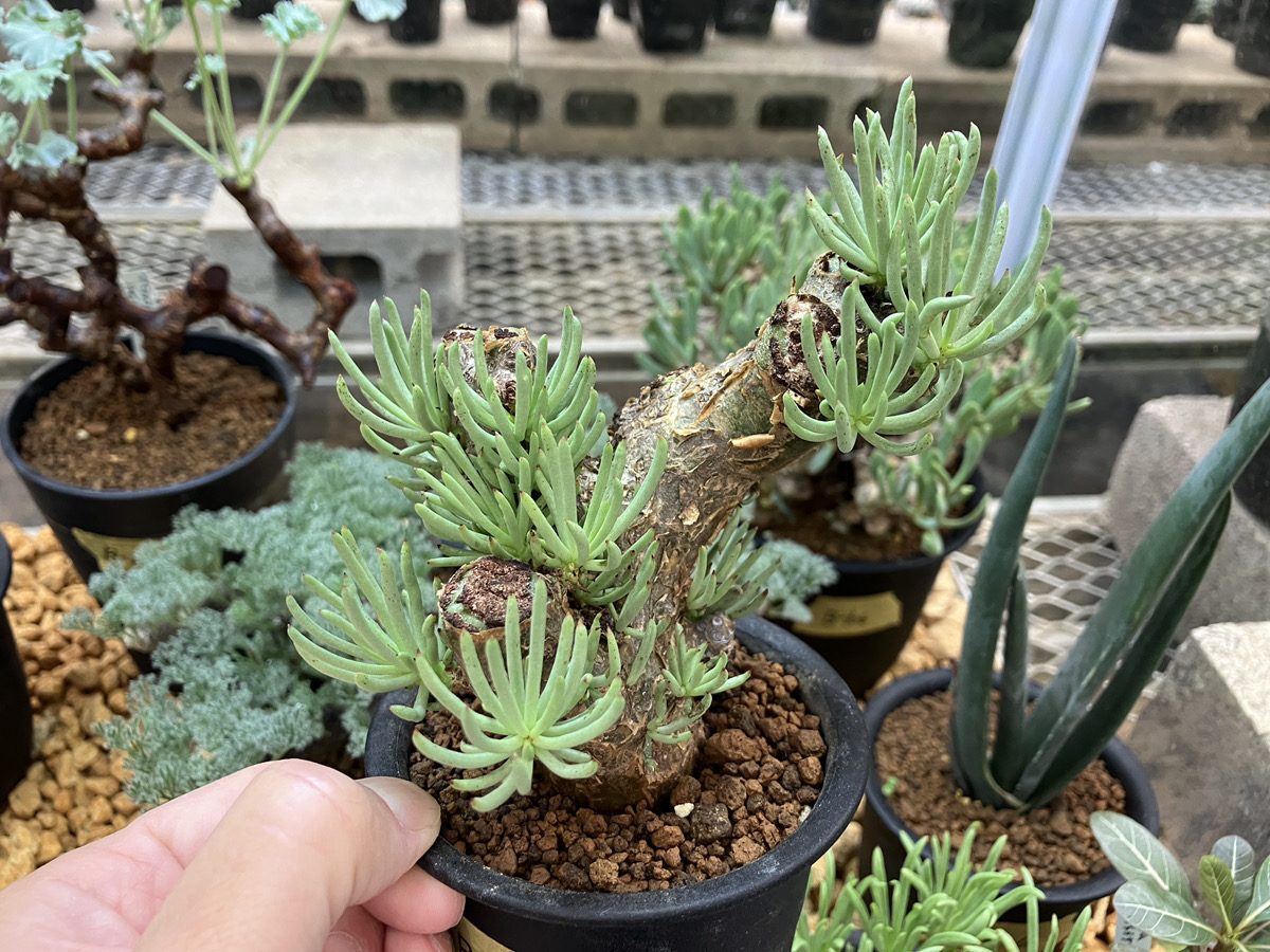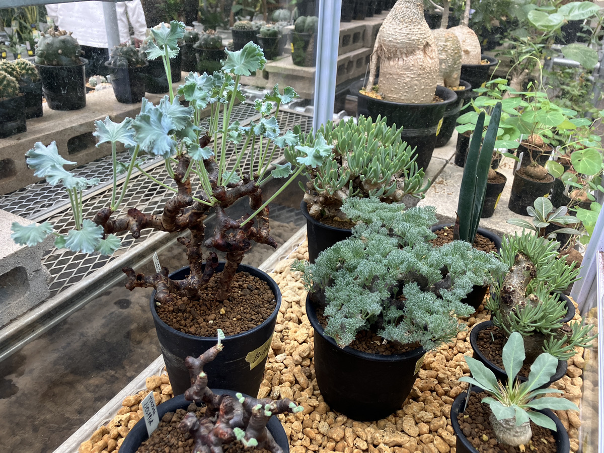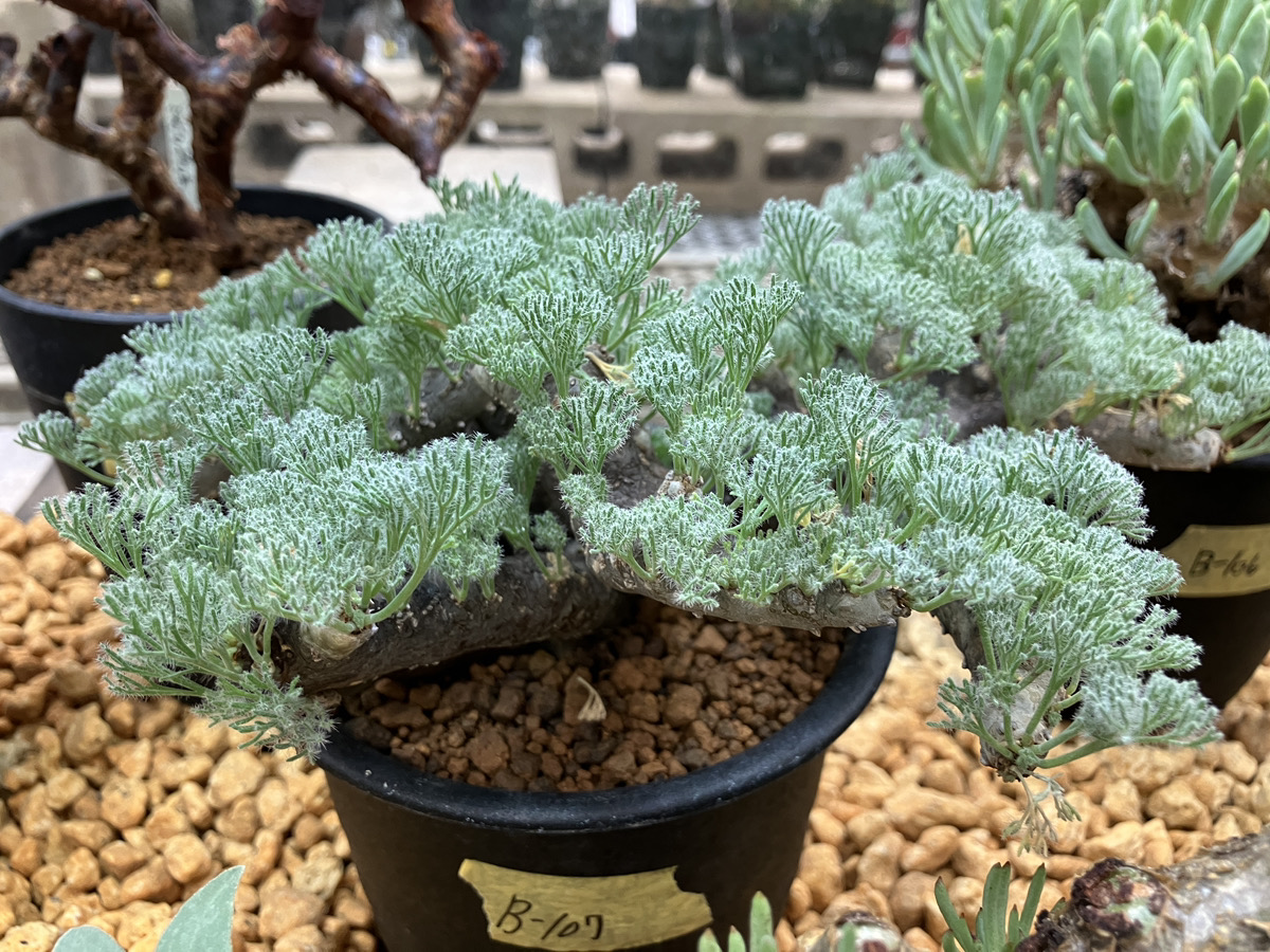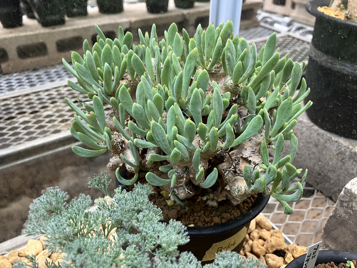 トゲなしタイプ、ふわふわ葉っぱ盆栽系塊根。花は9月中旬頃モリモリ咲いていました。今年3月入荷株を半年養生しました。