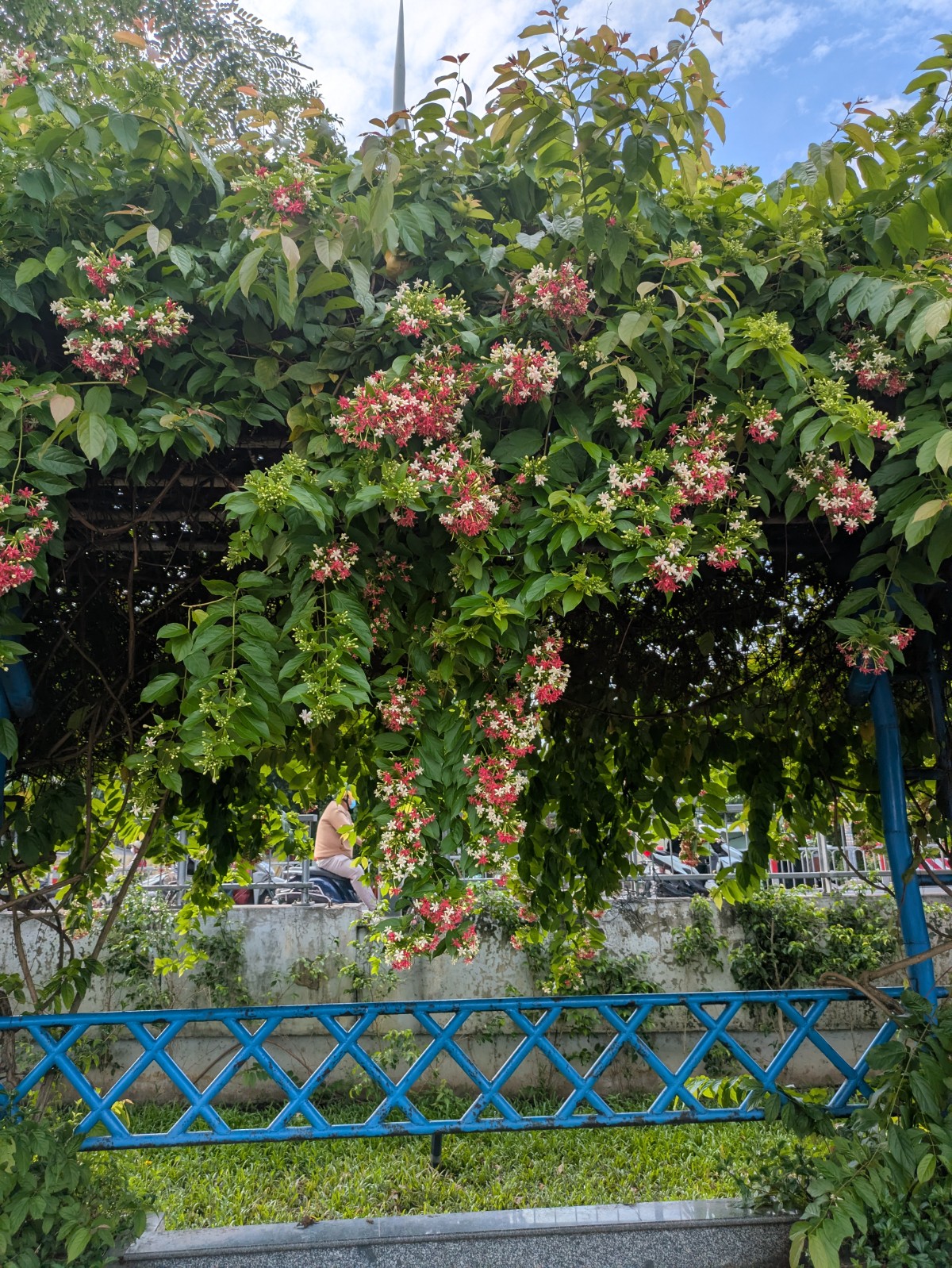 実はついていなかったので残念ながら画像は無いのですが、是非ネットで検索してご覧ください。実のついた様子もかなり衝撃的です。英語では大砲の玉にみたてて、「Cannonball tree」とよばれるそうです。学名はCouroupita guianensis。なんと読むのでしょうか...コウロウピタ・ギアネンシス? ギアネンシスからわかるように南米ガイアナの原産だそうで、世界各地の植物園や熱帯では街路や庭園、寺院などに植えられているそうです。今回の旅ではこちらの場所以外では、タオディエンと呼ばれる地区にあったカフェの植え込みで見かけた程度で、それほどあちこちに植えられてはいなかったように思います。