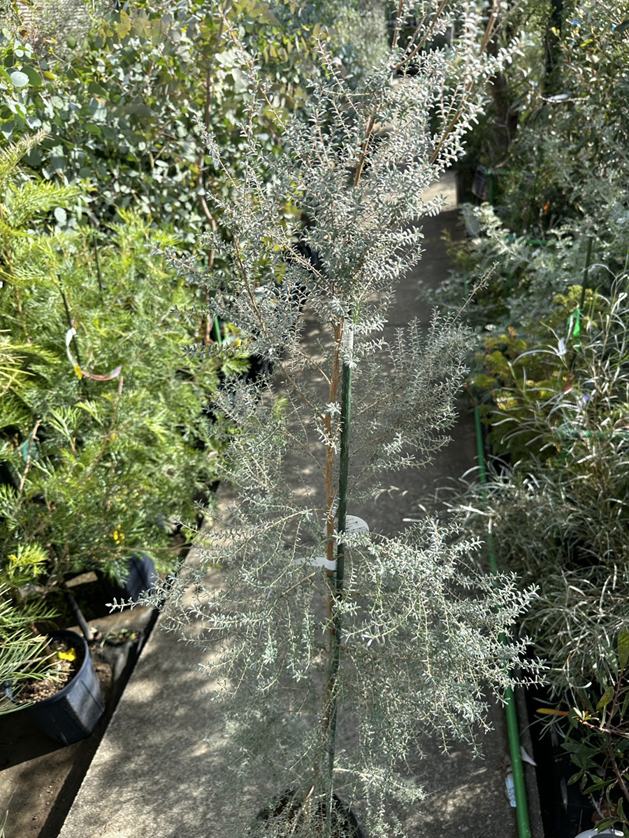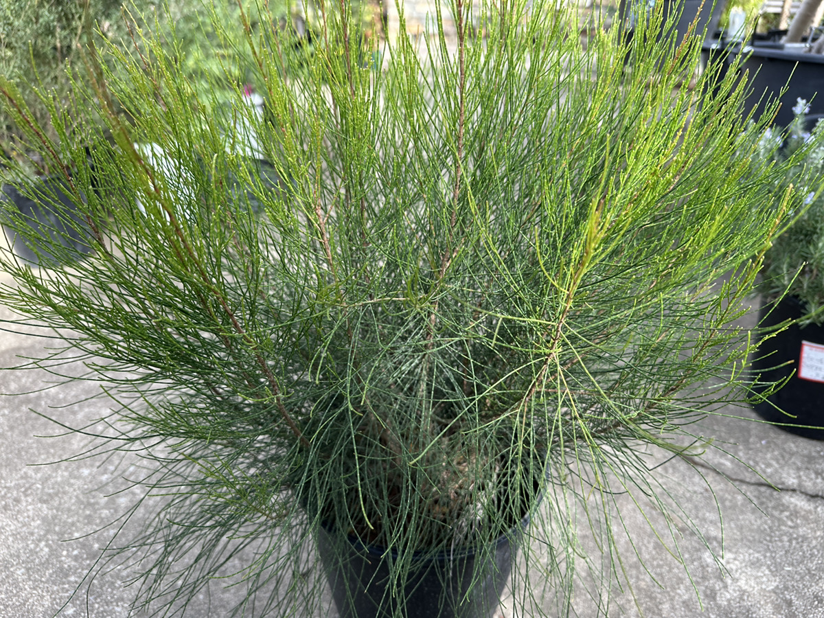 モフモフな姿。ふんわり広がる枝葉が魅力のオーストラリア原産の常緑低木。防風や防砂の目的などでも植えられ、丈夫で育てやすい。