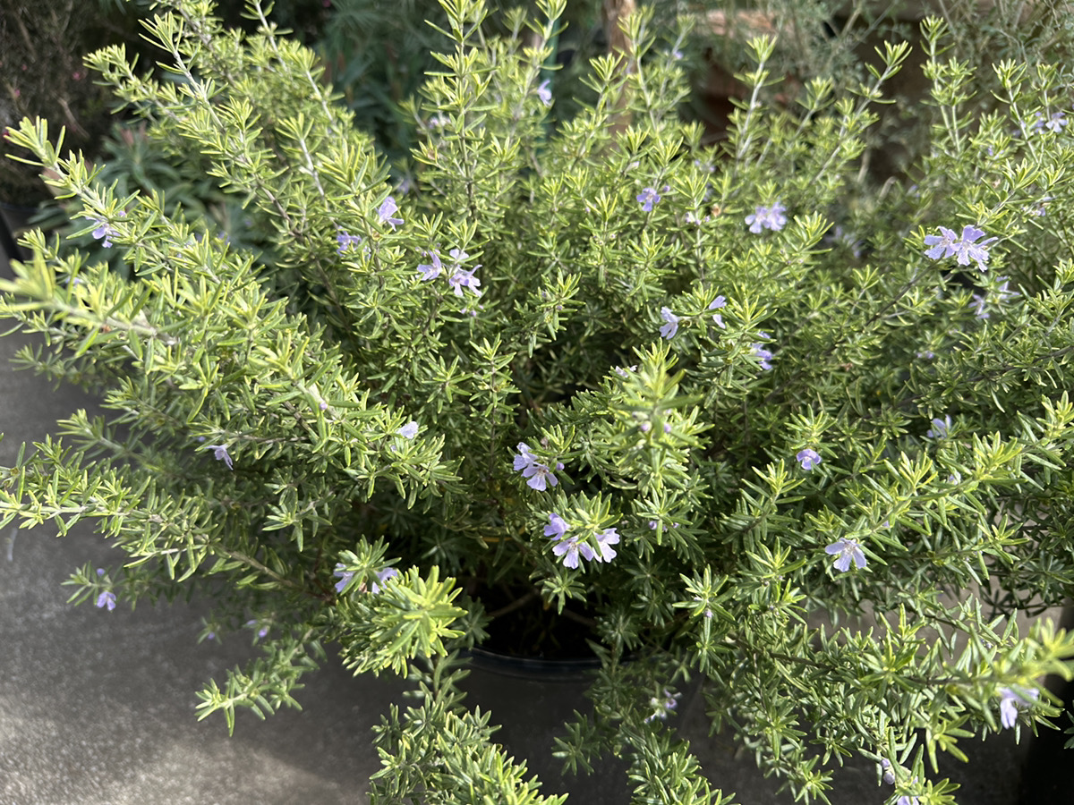 夏ごろに花茎を立ち上げ、小さな青紫花を咲かせます。