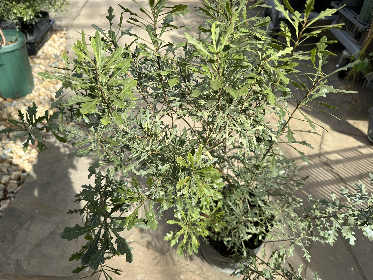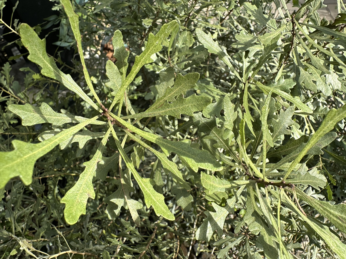 クエルシフォリアという種名はオークの葉を意味し、それを彷彿とさせる葉。乾燥に耐える低木でやや水平に広がる樹形。