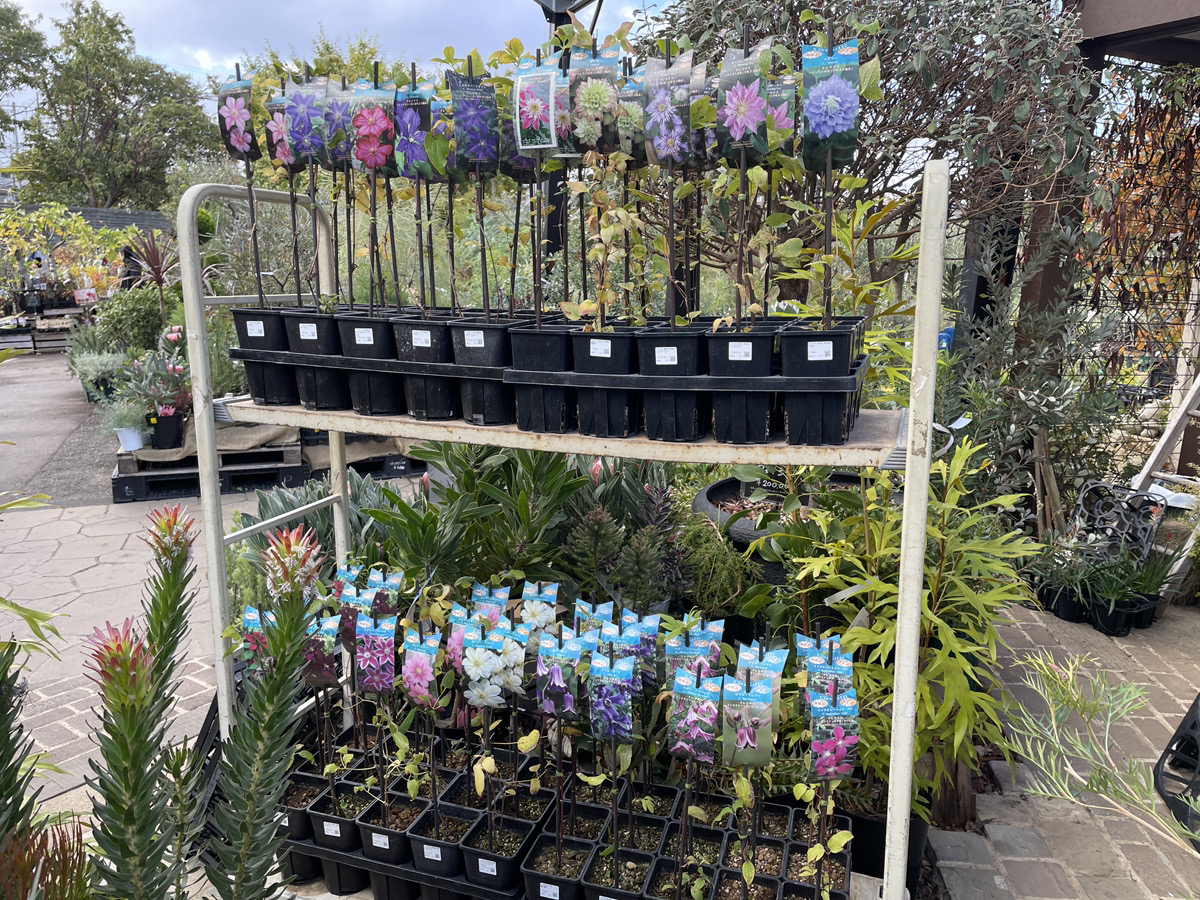 ▲クレマチス 各種 秋の入荷も終盤戦、春の開花に期待をして植えつけましょう!