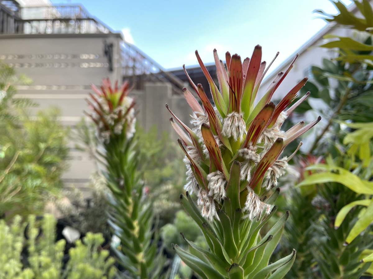 ▲プロテア ポッサムマジック 存在感のある大型の花が目を惹きます