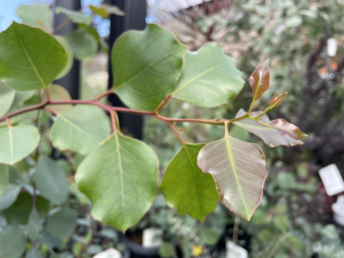 ▲ユーカリ グロブロス アロマテラピーでよく使われる品種、大きくなると長葉になります。