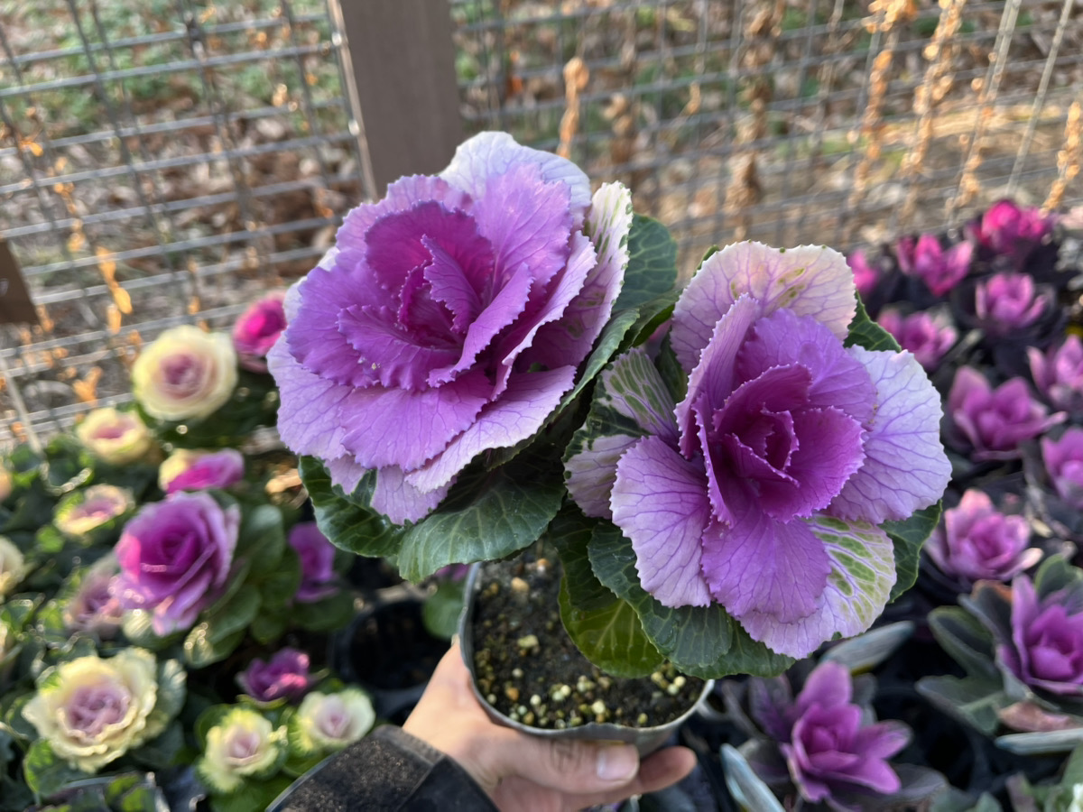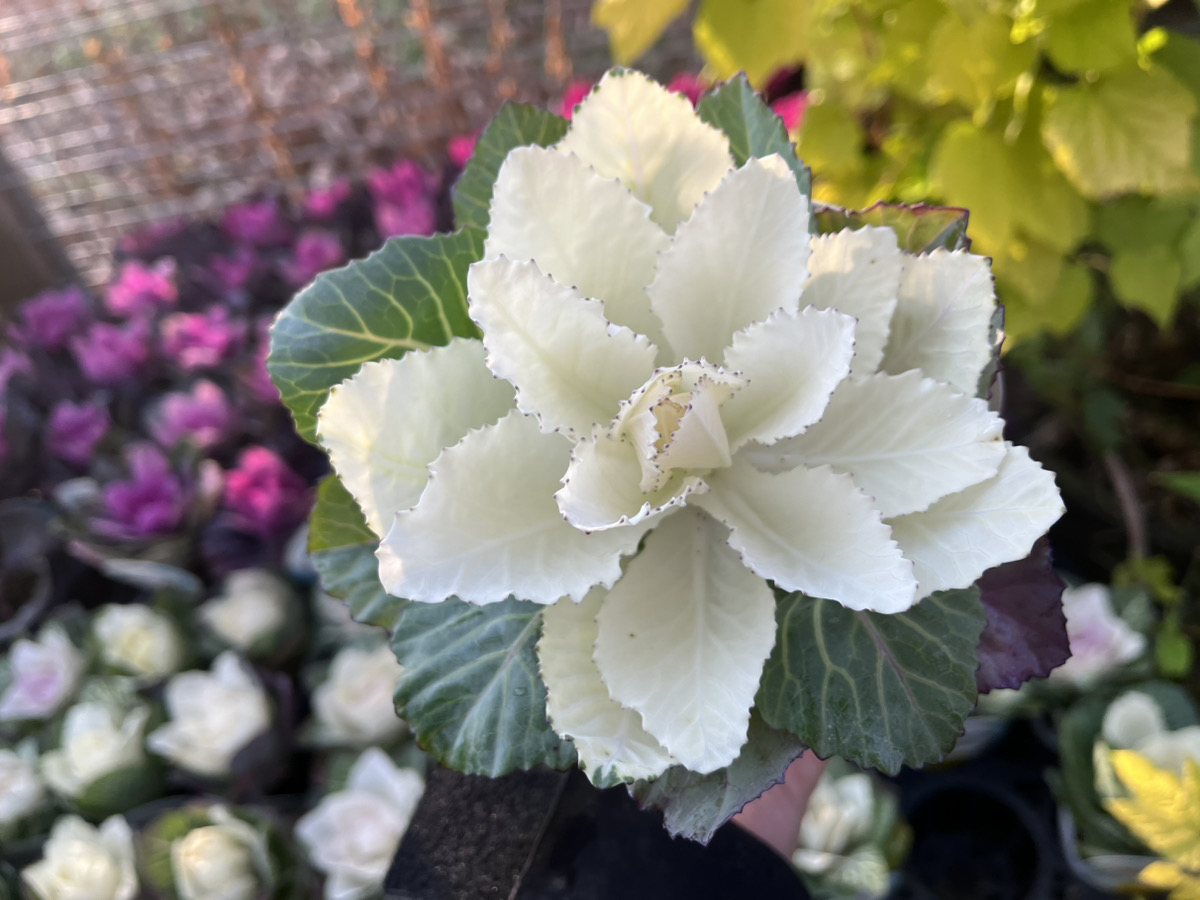 ちなみに…よく「食べれるの?」とご質問を受けますがキャベツやケールを改良した品種の為、食べれなくはないですが葉が硬くあまりおいしくはないでしょう…あくまで「観賞用」でございます。