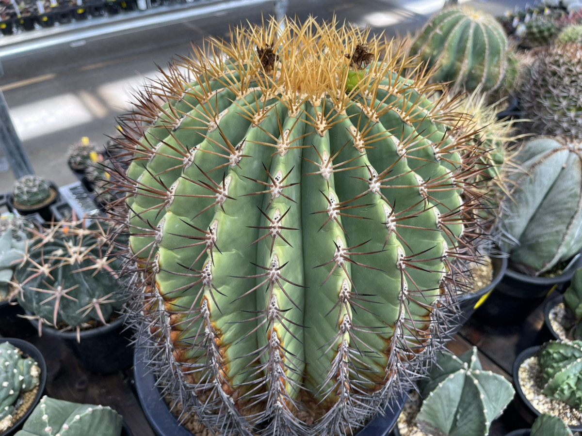 ▲フェロカクタス カルメン玉 巨大カルメン玉売場で待ち構えています!!