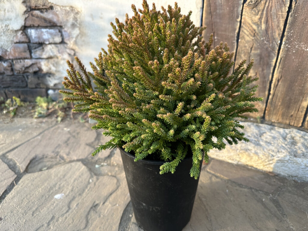 自然に丸みを帯びた樹形に生育するコンパクトな品種。 成長が非常にゆっくり。