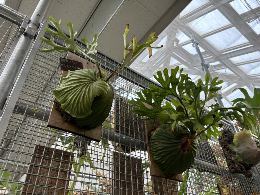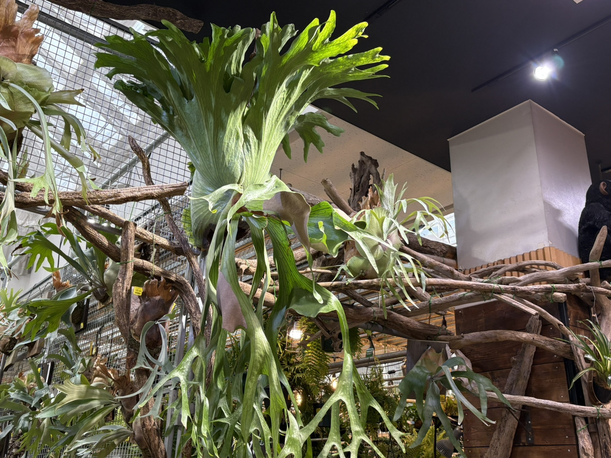 ▲まずはビカクコーナー正面。大迫力でお客様をお出迎え。
