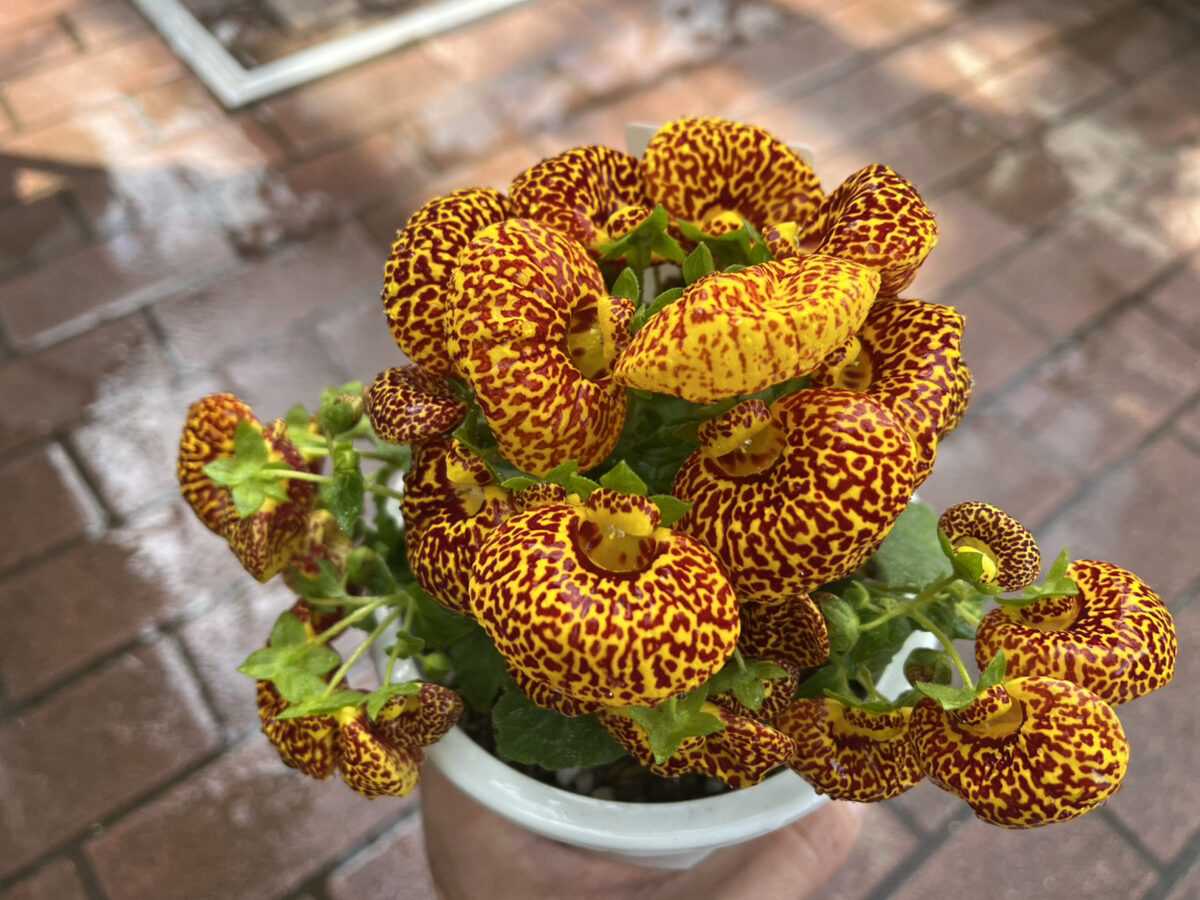 ▲カルセオラリア 南米原産のキンチャクソウ科の多年草。ぷっくりと膨らんだ巾着のような見た目が特徴です。種類も様々で、自生地や受粉してほしい昆虫によって模様も変化すると言われています。毒々しいこの見た目は、受粉してもらう昆虫に早く見つけてもらうための戦略なのかもしれませんね