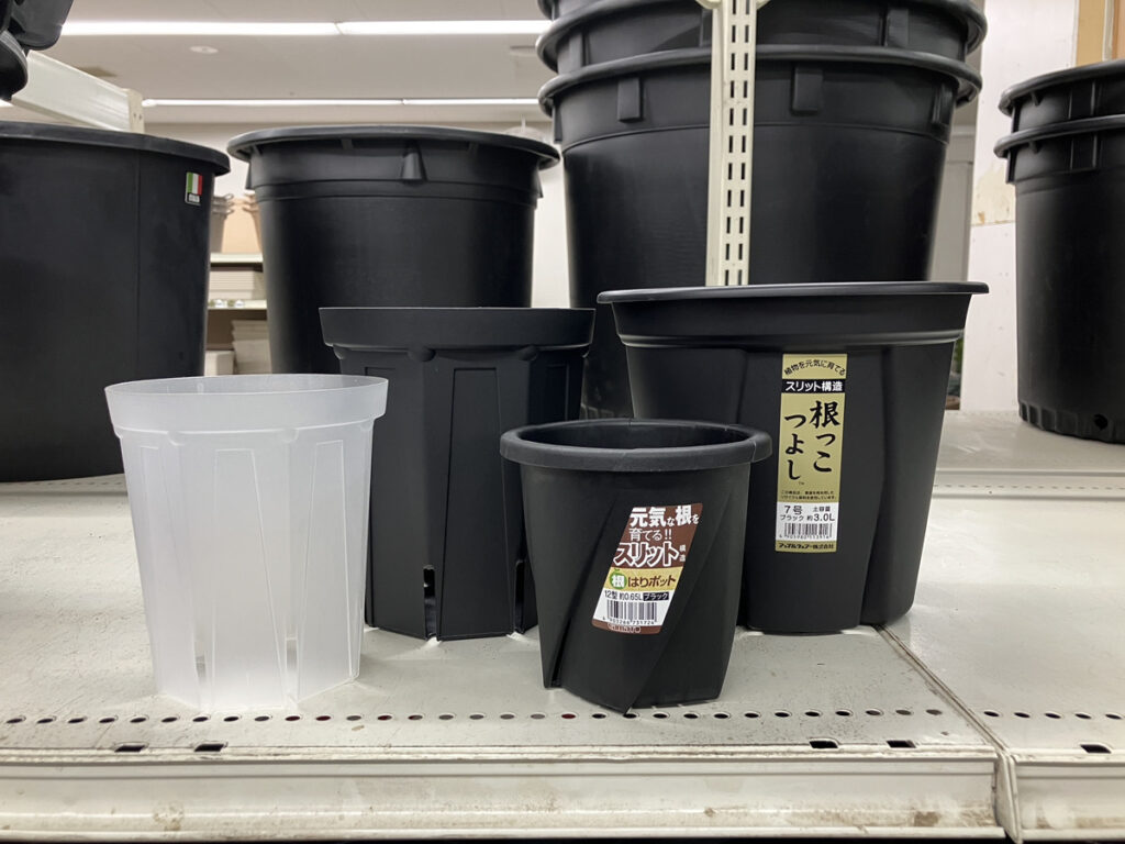プラスチック鉢:安価で軽くて扱いやすいものが多いです。育成用の果樹苗や観葉苗、花苗に。