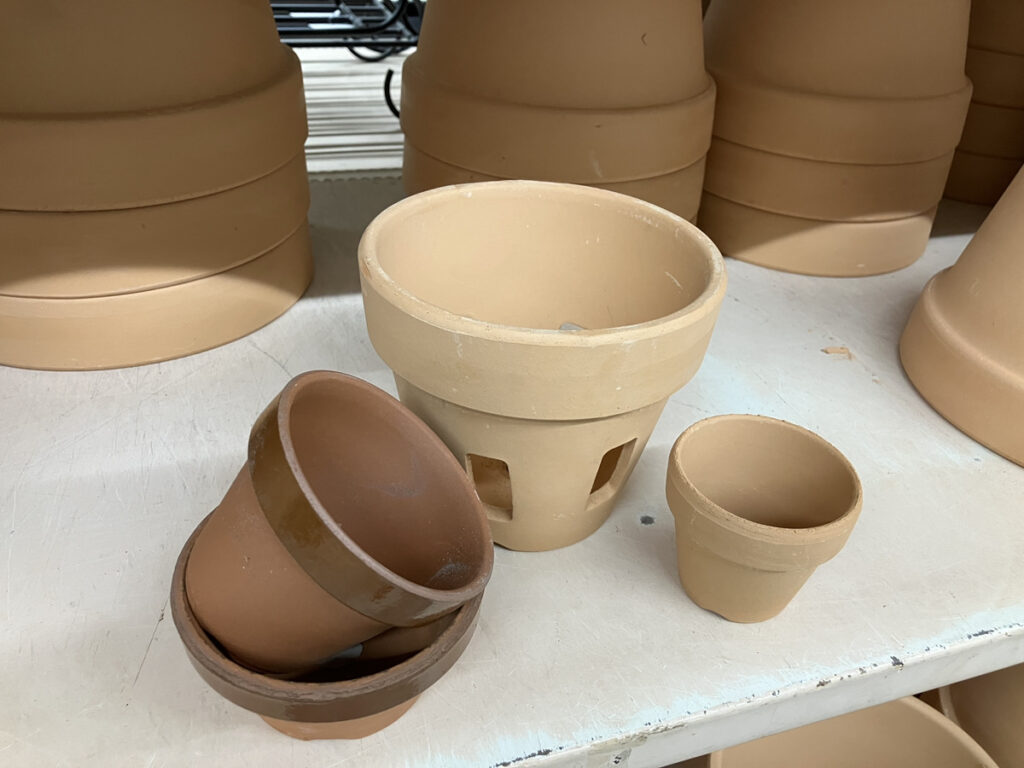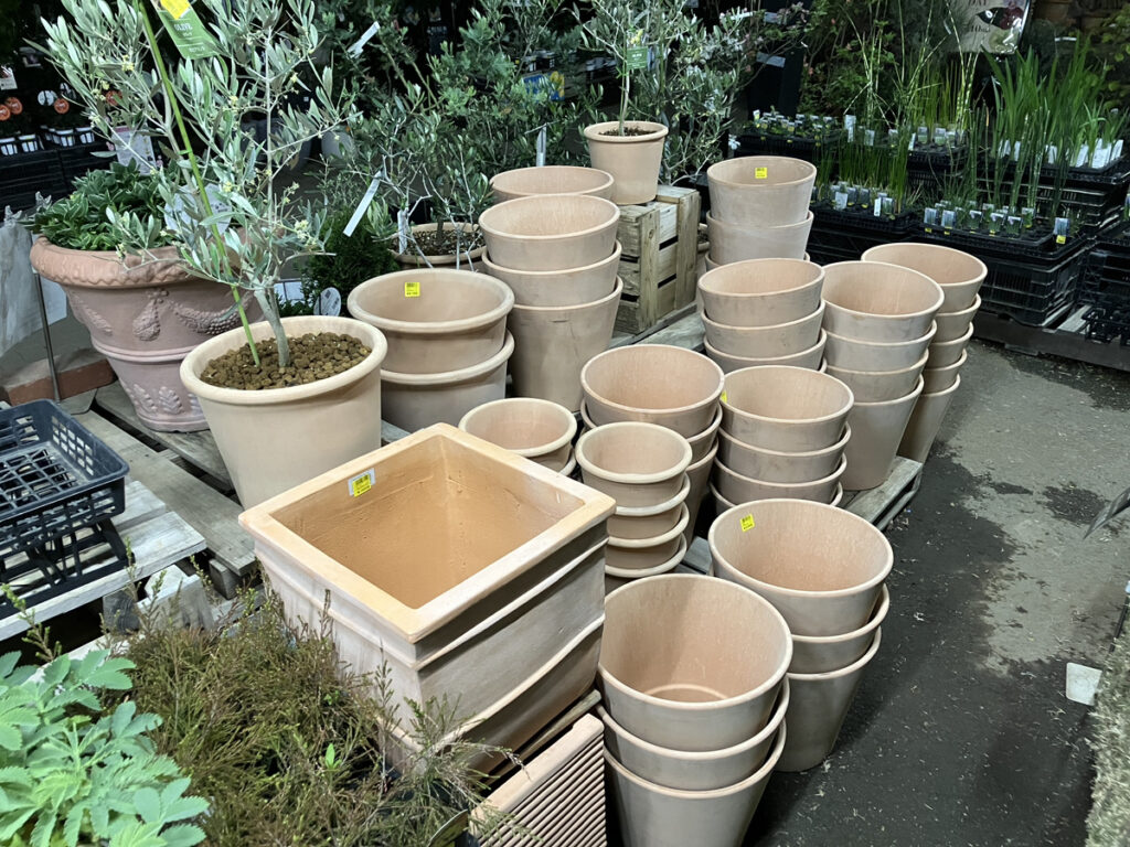 ▲同じく、重量のあるテラコッタポット。アンティーク加工のテラコッタも人気。