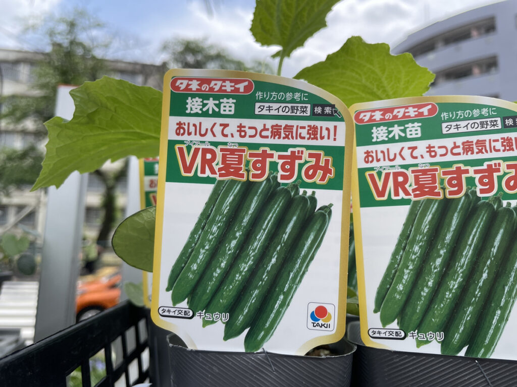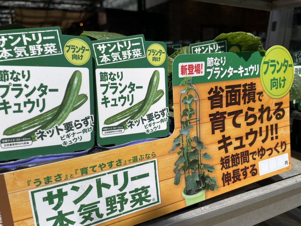 ▲節なりプランターキュウリ こちらはプランター向きのコンパクトタイプ