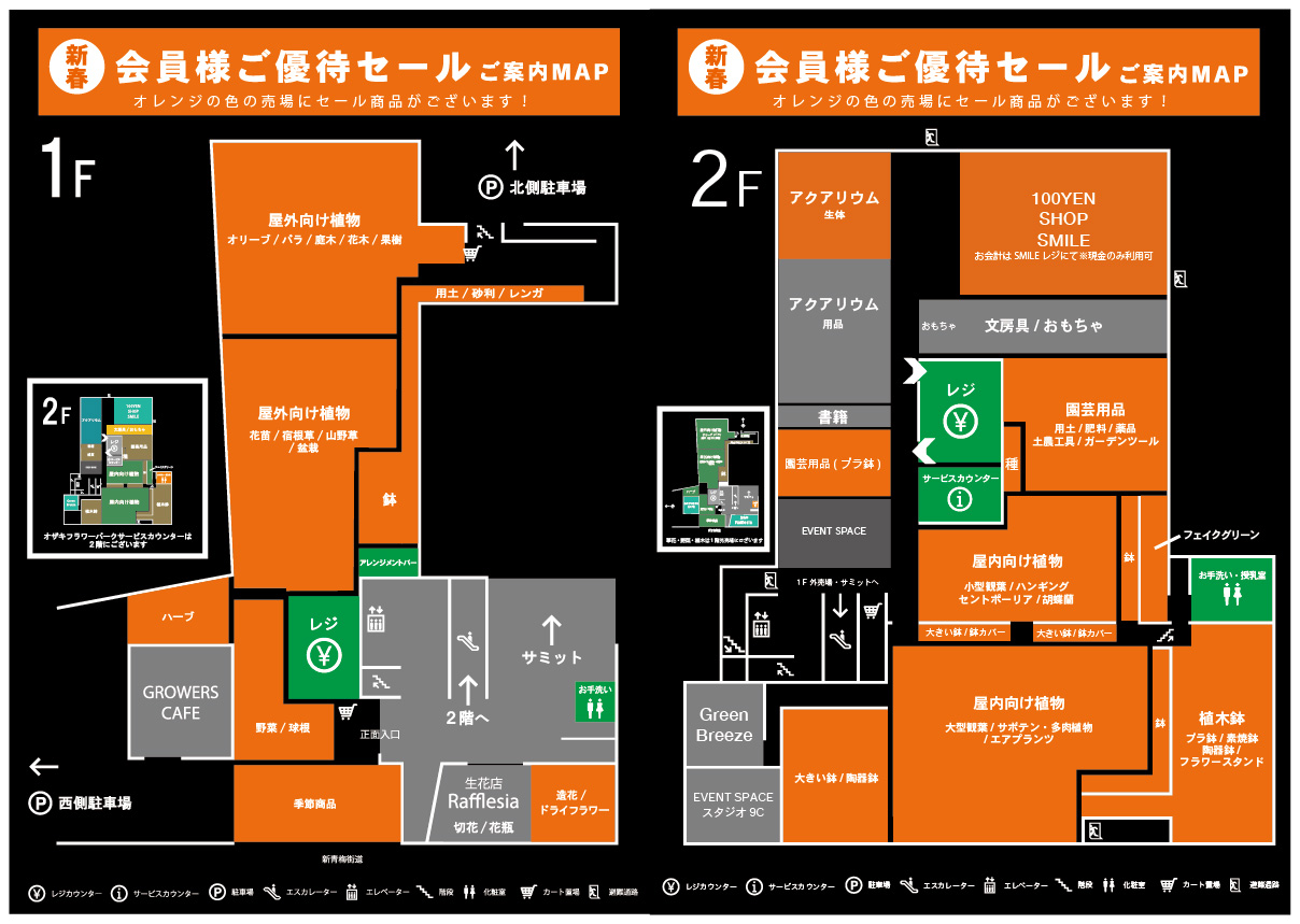 ※切花(生花店Rafflesia)、文房具・おもちゃ、書籍、商品券、100円ショップSMILE、グリーンブリーズ、グロワーズカフェ、手数料などはご優待セールの割引対象外となります。