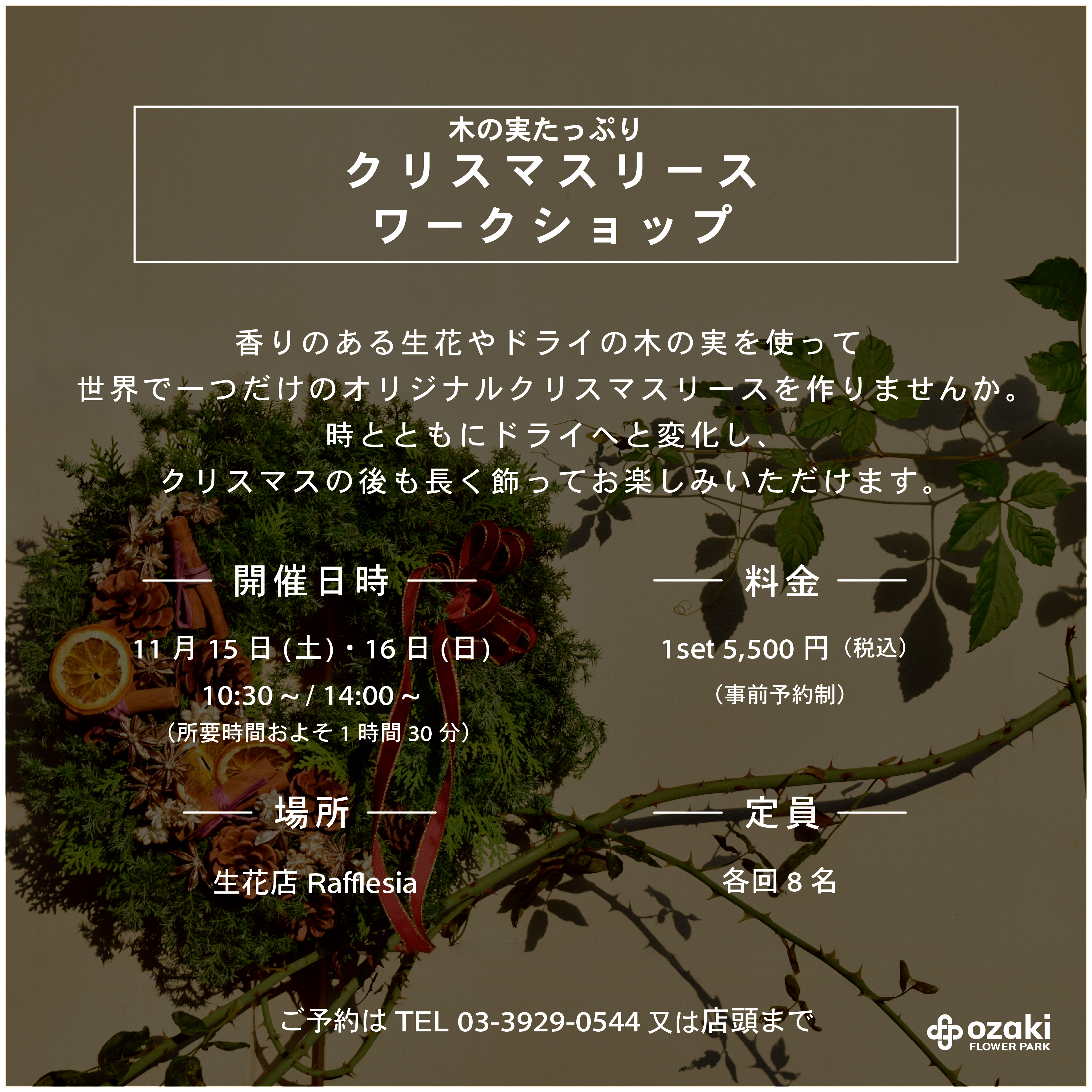 【満員御礼】11/15-16|木の実たっぷり クリスマスリースワークショップ