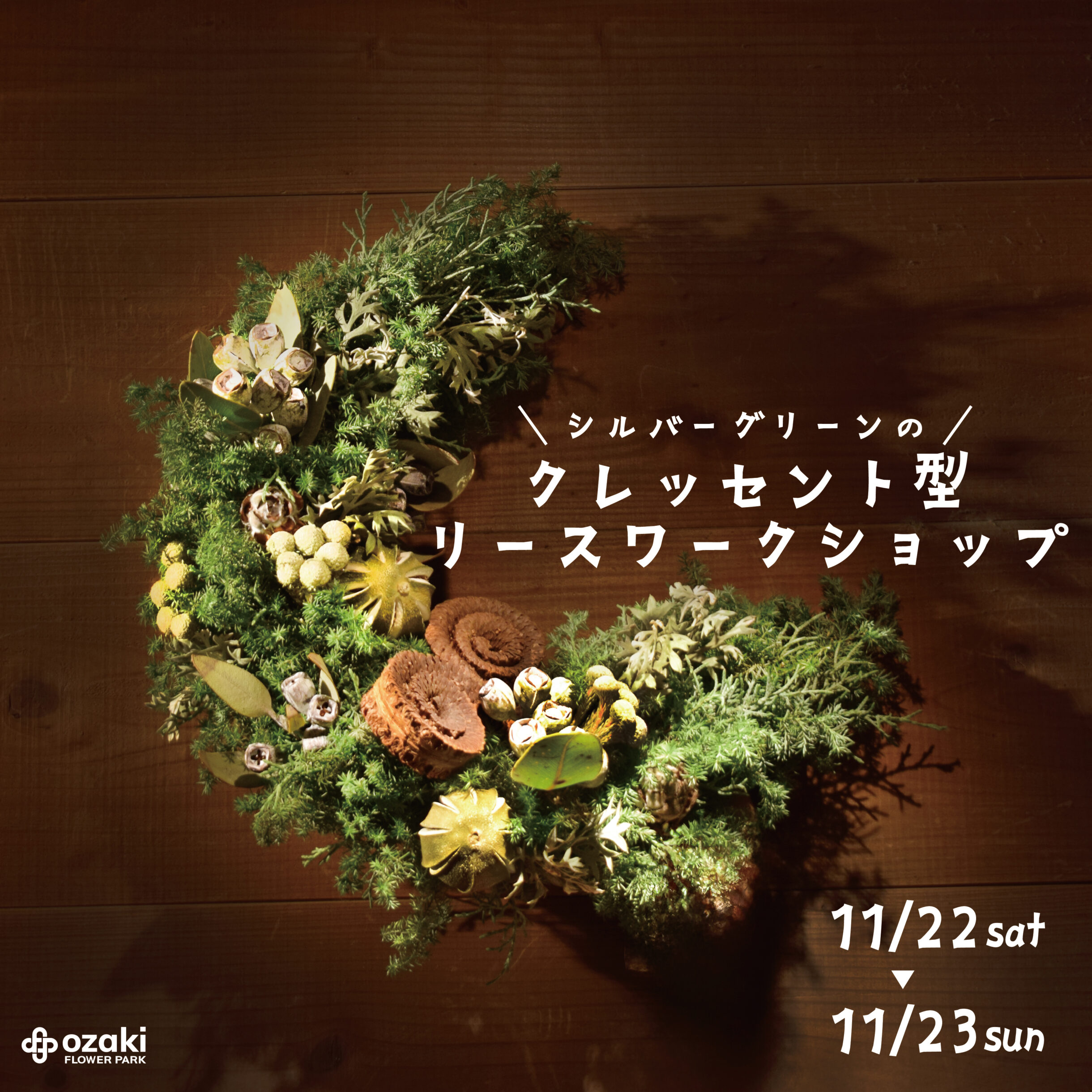 【シルバーグリーンのクレッセント型リースワークショップ】