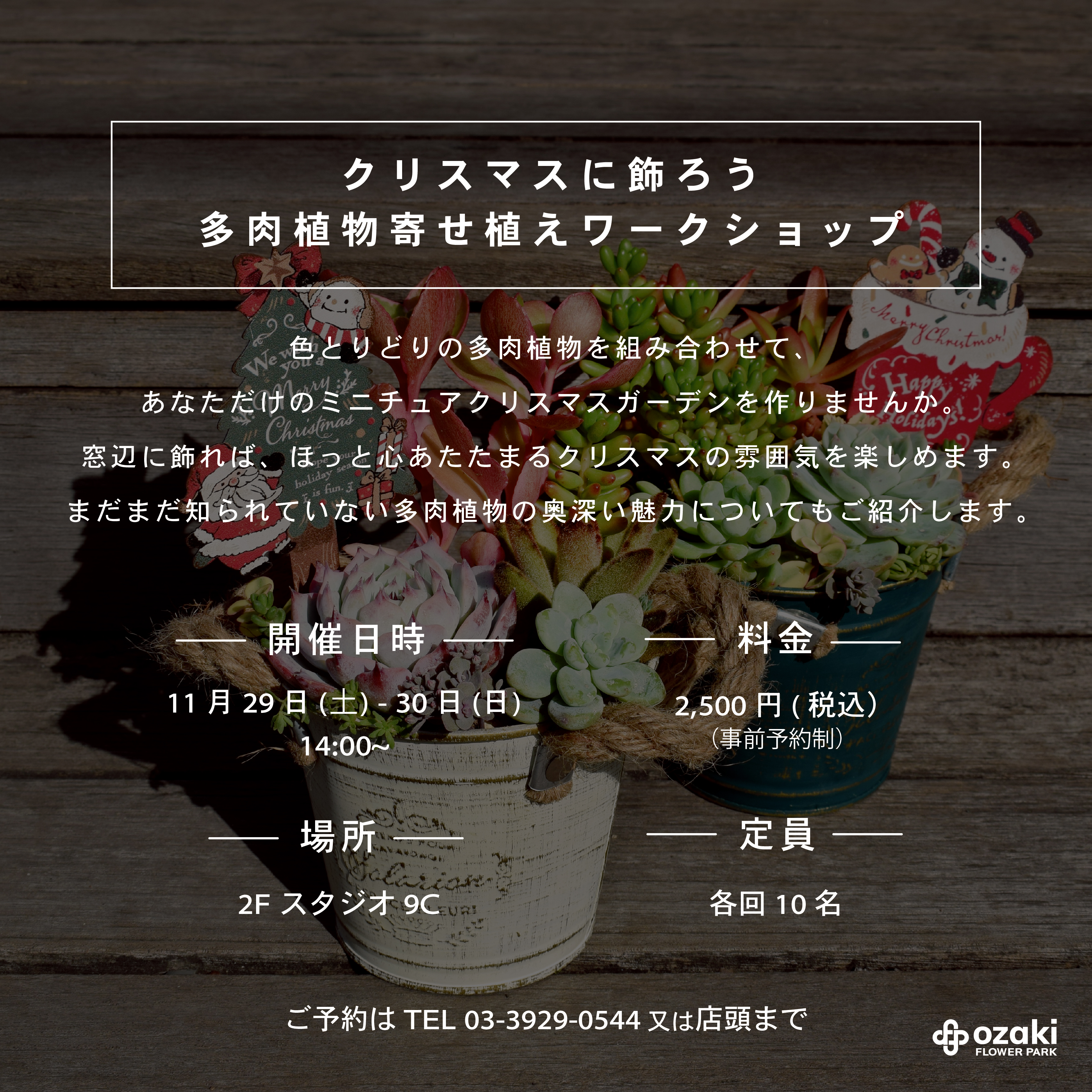 【クリスマスに飾ろう 多肉植物寄せ植えワークショップ】