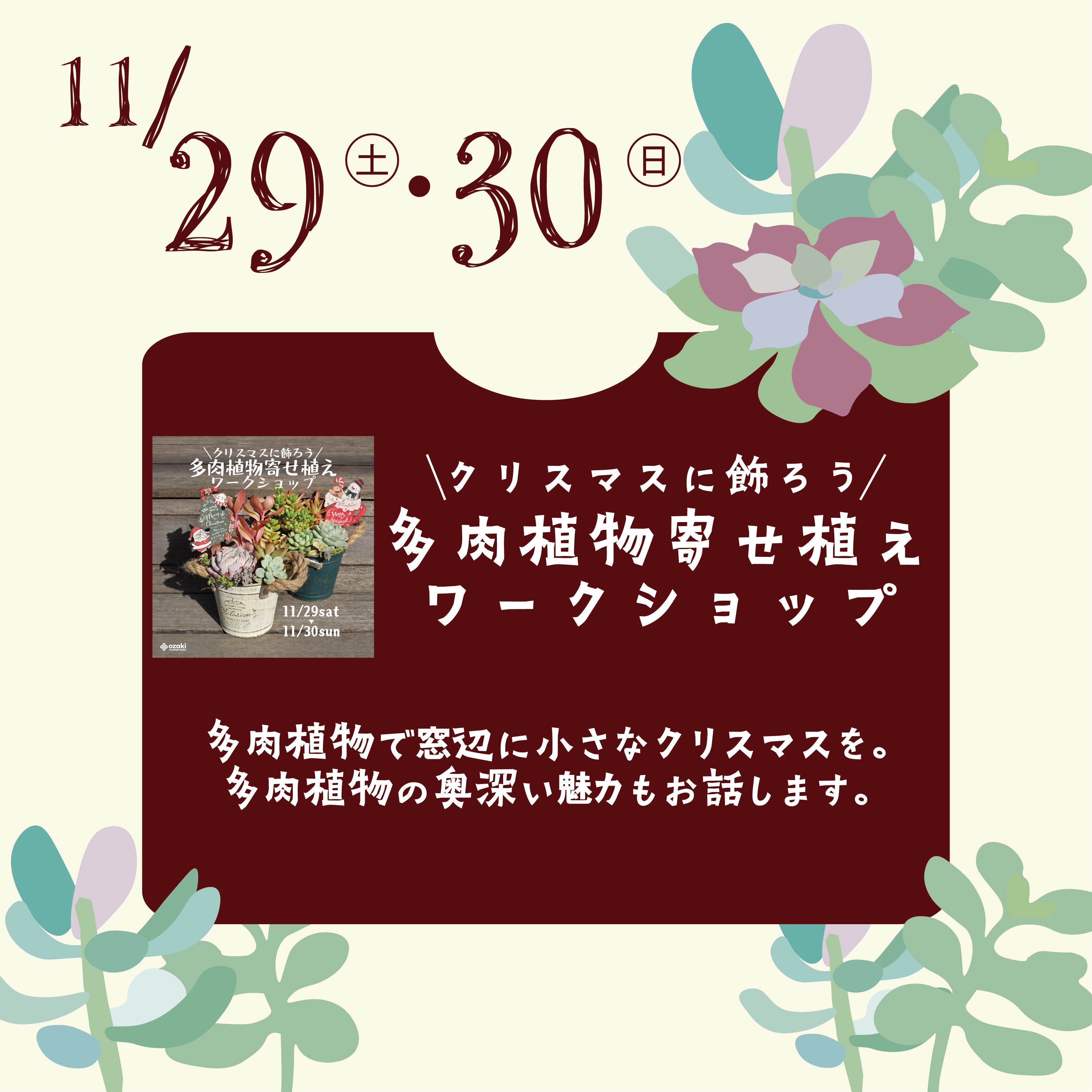 クリスマスに飾ろう 多肉植物寄せ植えワークショップ