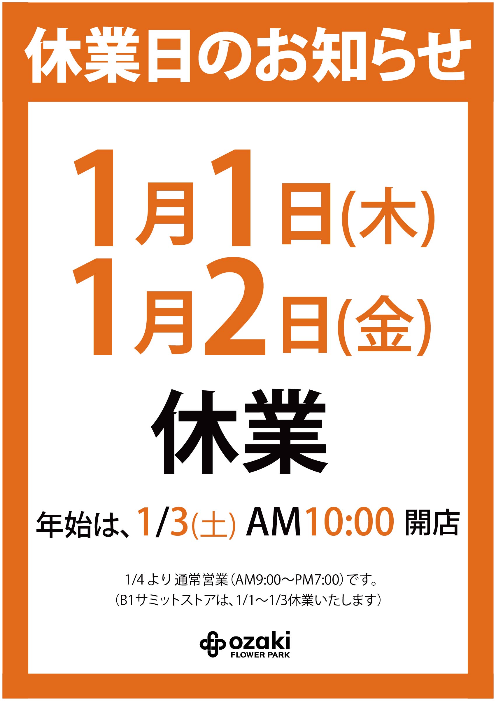 年始は、1月3日(土) 午前10:00 より開店いたします。