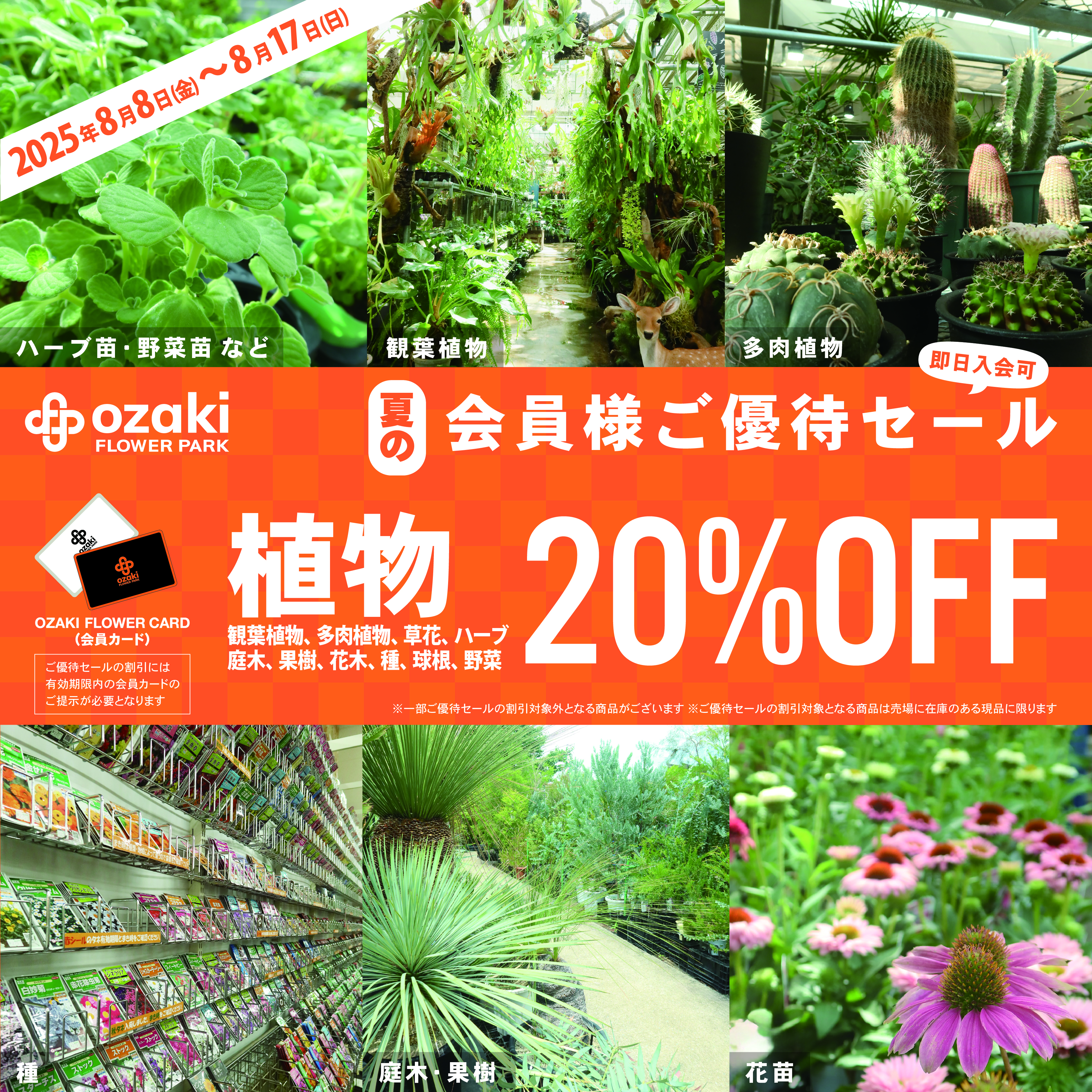 期間中、有効期限内の会員カードをご提示で植物20%OFF!